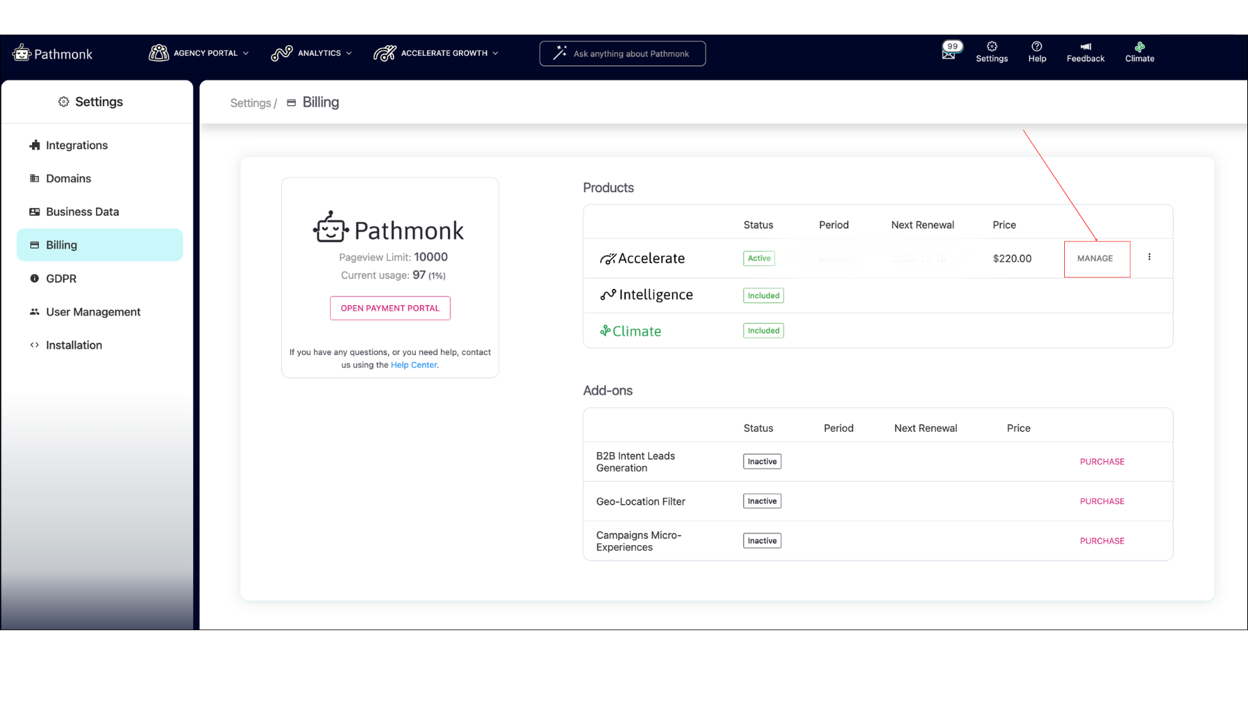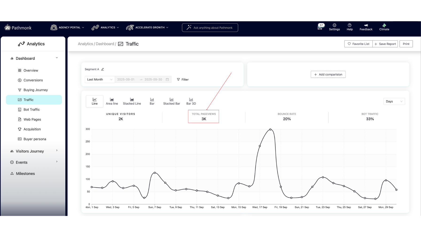 - Pageviews are tracked on every page where Pathmonk is installed.