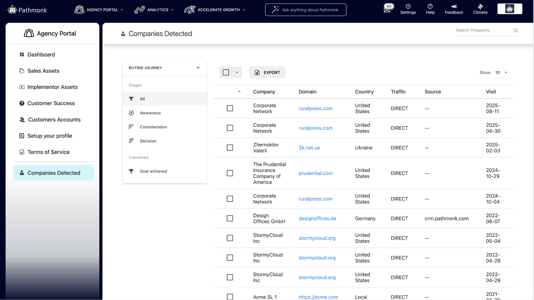 If you’re one of our agency partners and don’t yet have this feature enabled, please request access by emailing us at support@pathmonk.com and specify which emails need to be added to the portal.