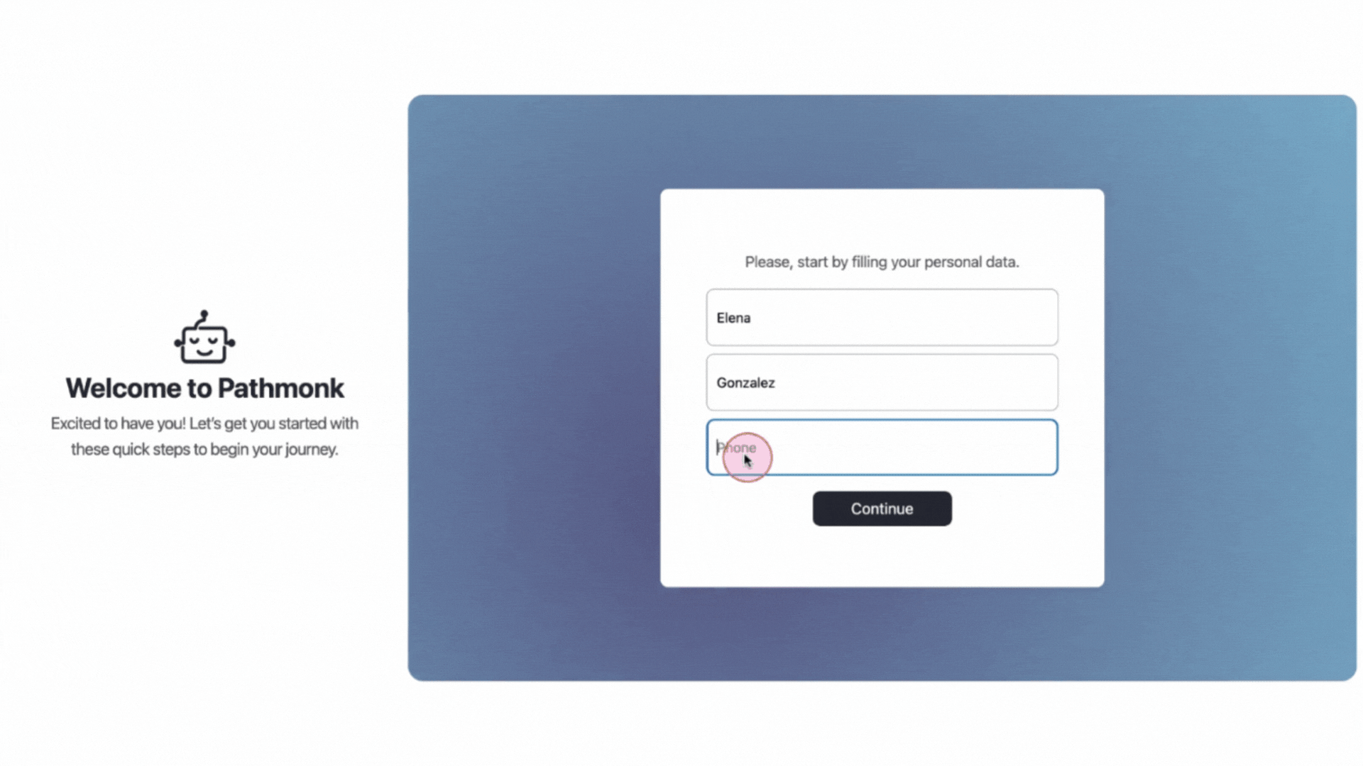 When you first log into Pathmonk, you’ll be asked to complete a short onboarding form to help tailor your setup. You’ll need to: