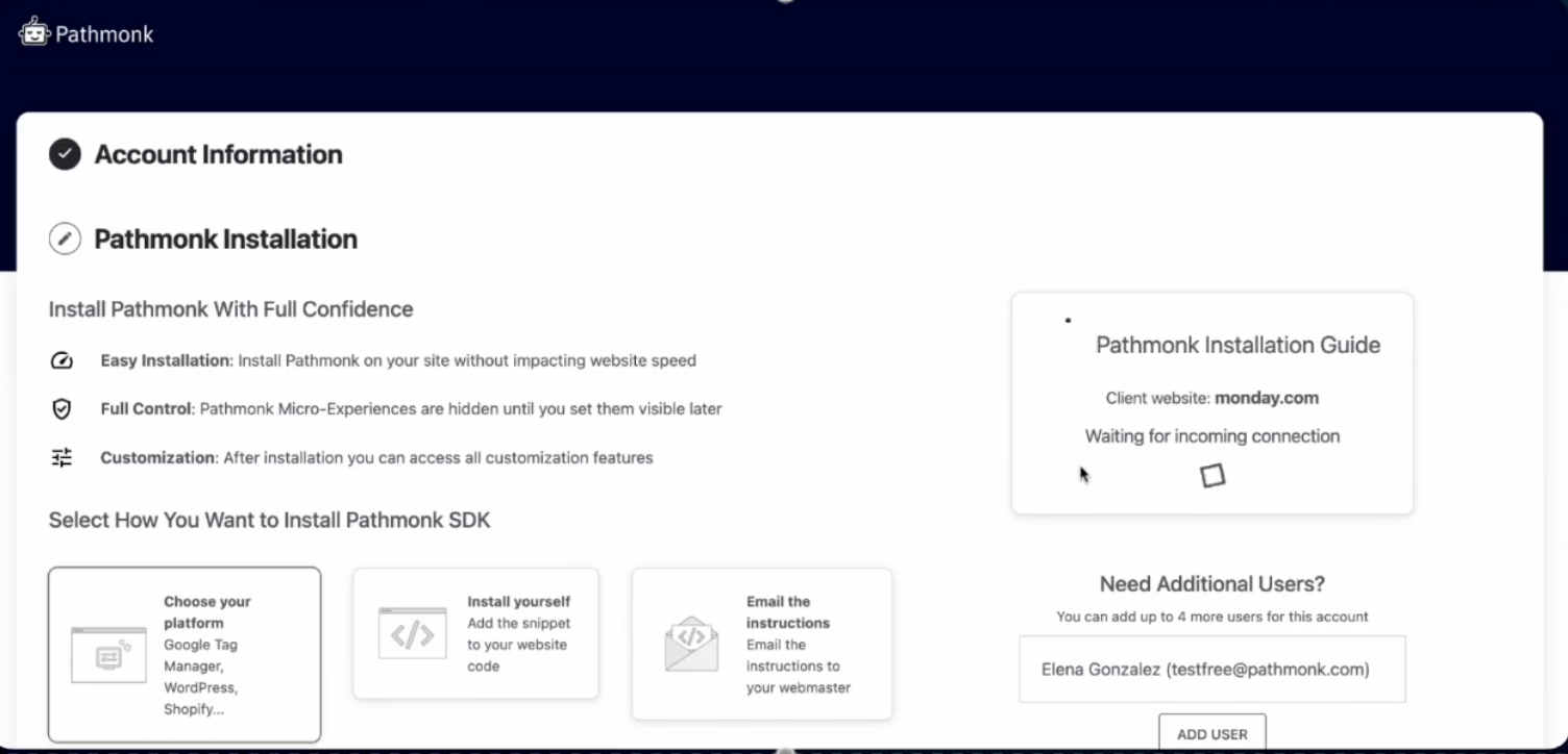 Once completed, Pathmonk will guide you to install the SDK snippet on your website.