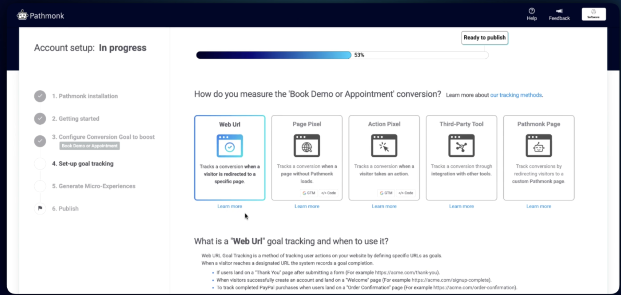 After your goal is configured, Pathmonk will guide you through tracking setup.