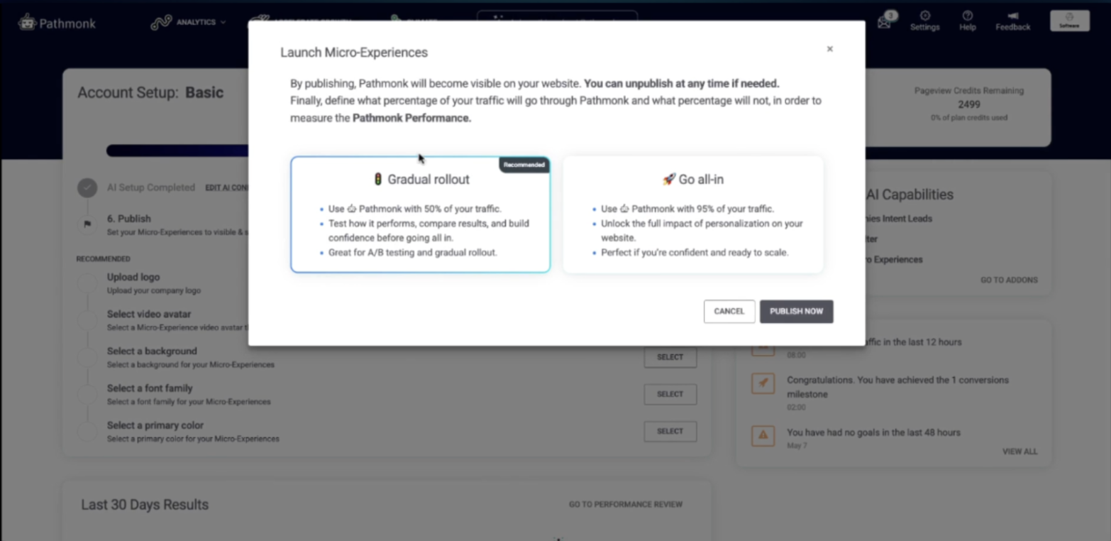 Once tracking is ready, Pathmonk automatically generates personalized Micro-Experiences based on your website content.