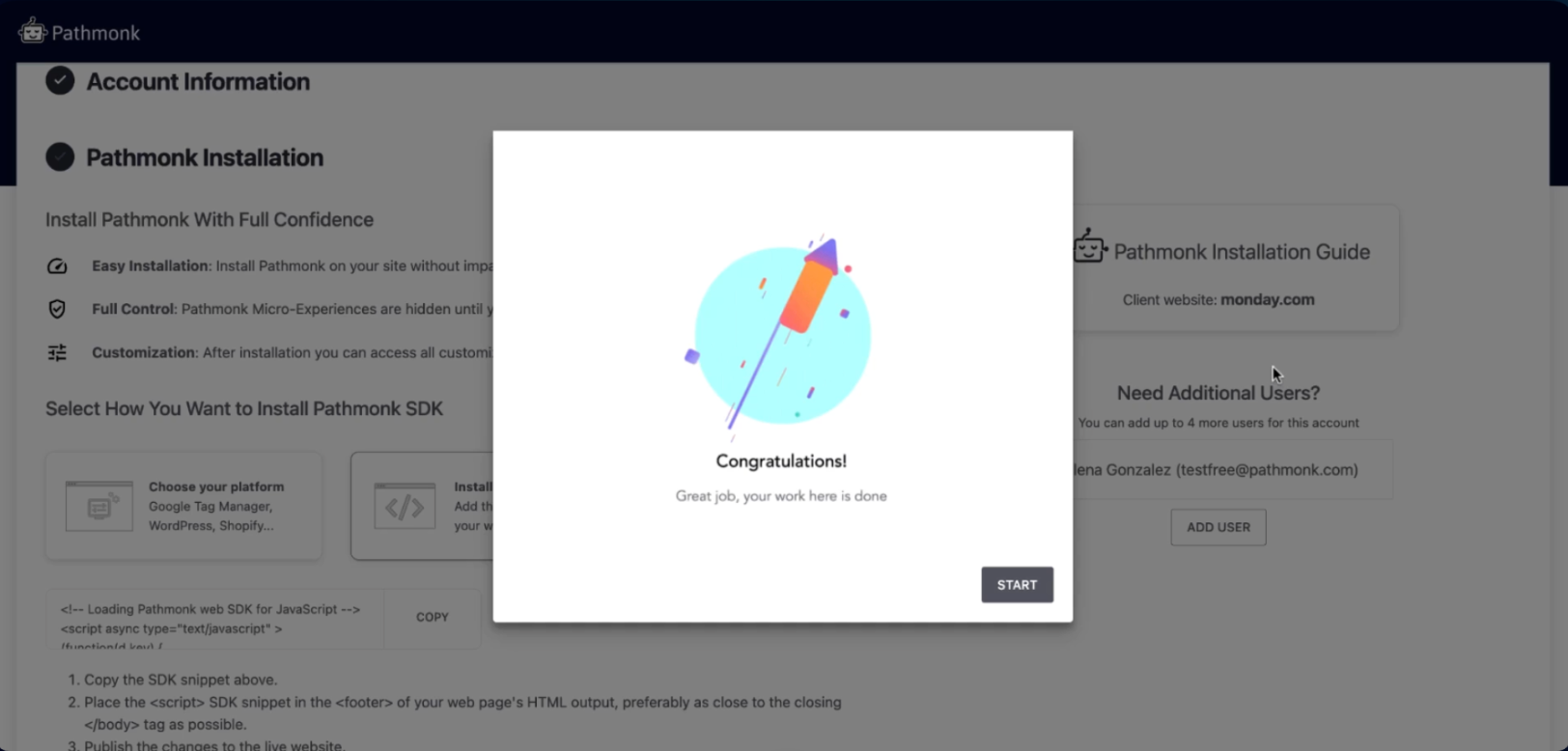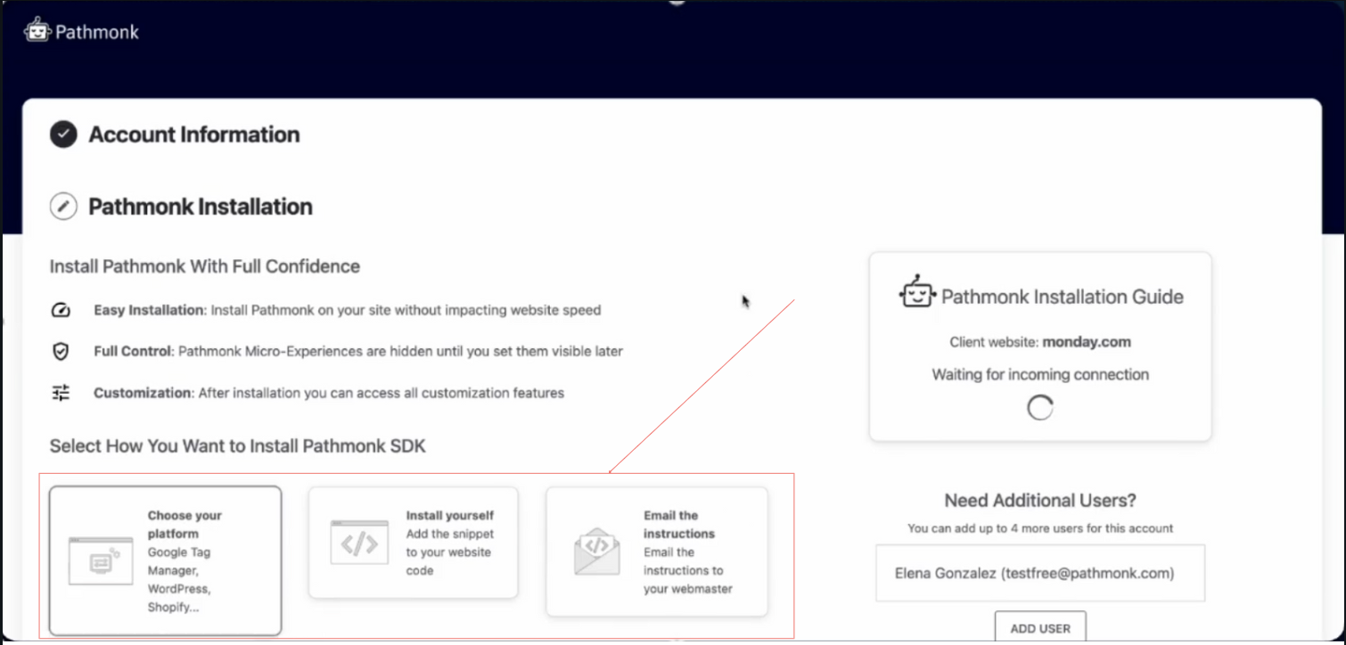 The Pathmonk SDK snippet must be installed for Pathmonk to gather insights and display Micro-Experiences later on.Nothing will appear live on your site until you decide to publish your experiences, so installation won’t affect your current website.