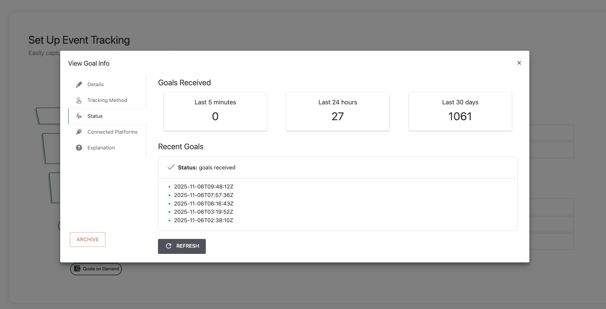 Archiving will permanently remove the event from your active tracking. Keep in mind that once an event is archived, it can’t be recovered, so make sure you don’t need its data before proceeding.