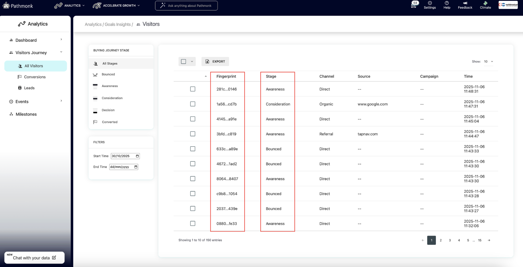 2. Go to Analytics → Visitors Journey → All visitors. You’ll see each visitor listed with: