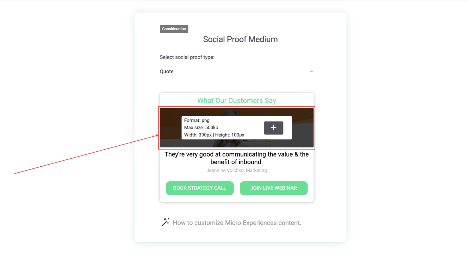 After uploading, your video will appear immediately inside the microexperience preview. If the dimensions or file size don’t match the requirements, you’ll see a red banner prompting you to adjust the file before saving.