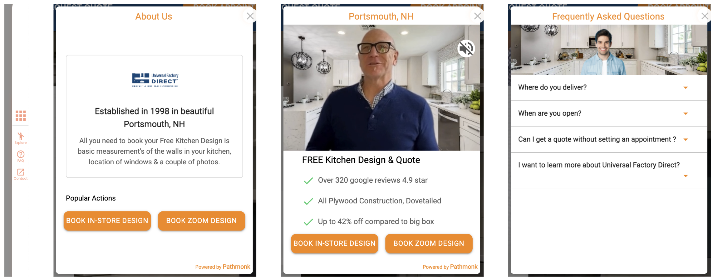 The menu acts as a quick-access panel to help visitors take action faster. It includes: