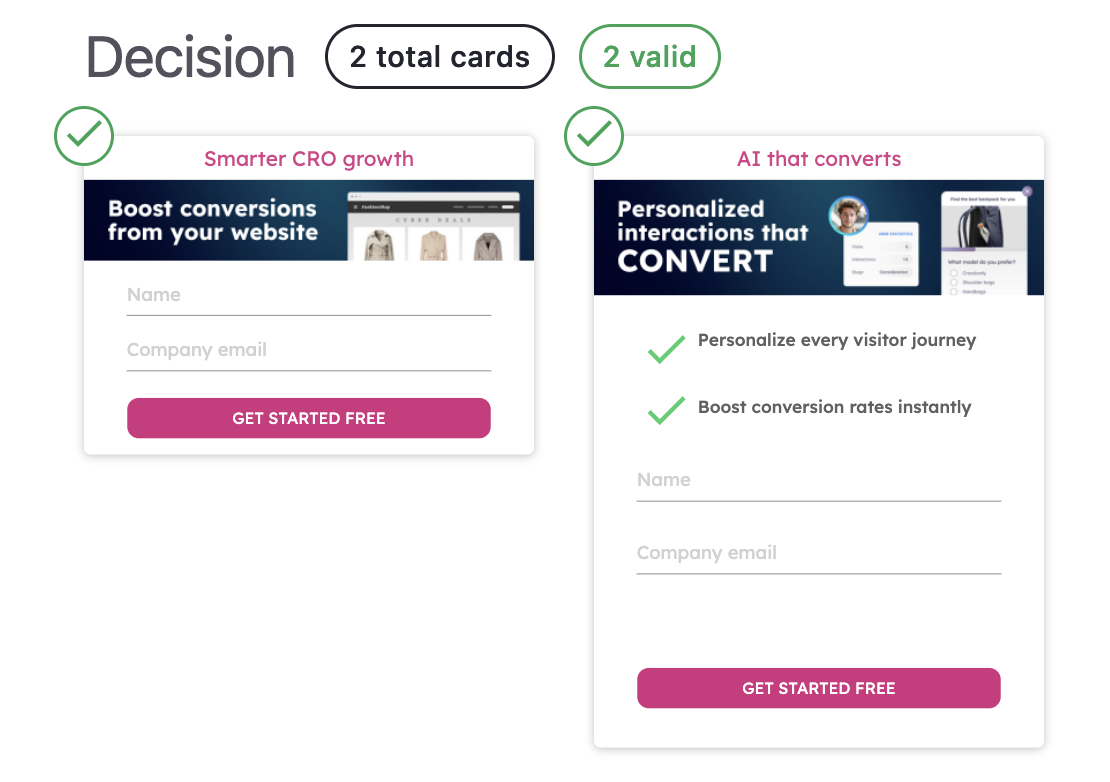 Decision-stage microexperiences are only available if your setup is configured as Collect leads using the Pathmonk Lead Generation Tool. These microexperiences include a built-in lead form directly inside the card, allowing visitors to convert instantly without leaving the page.
