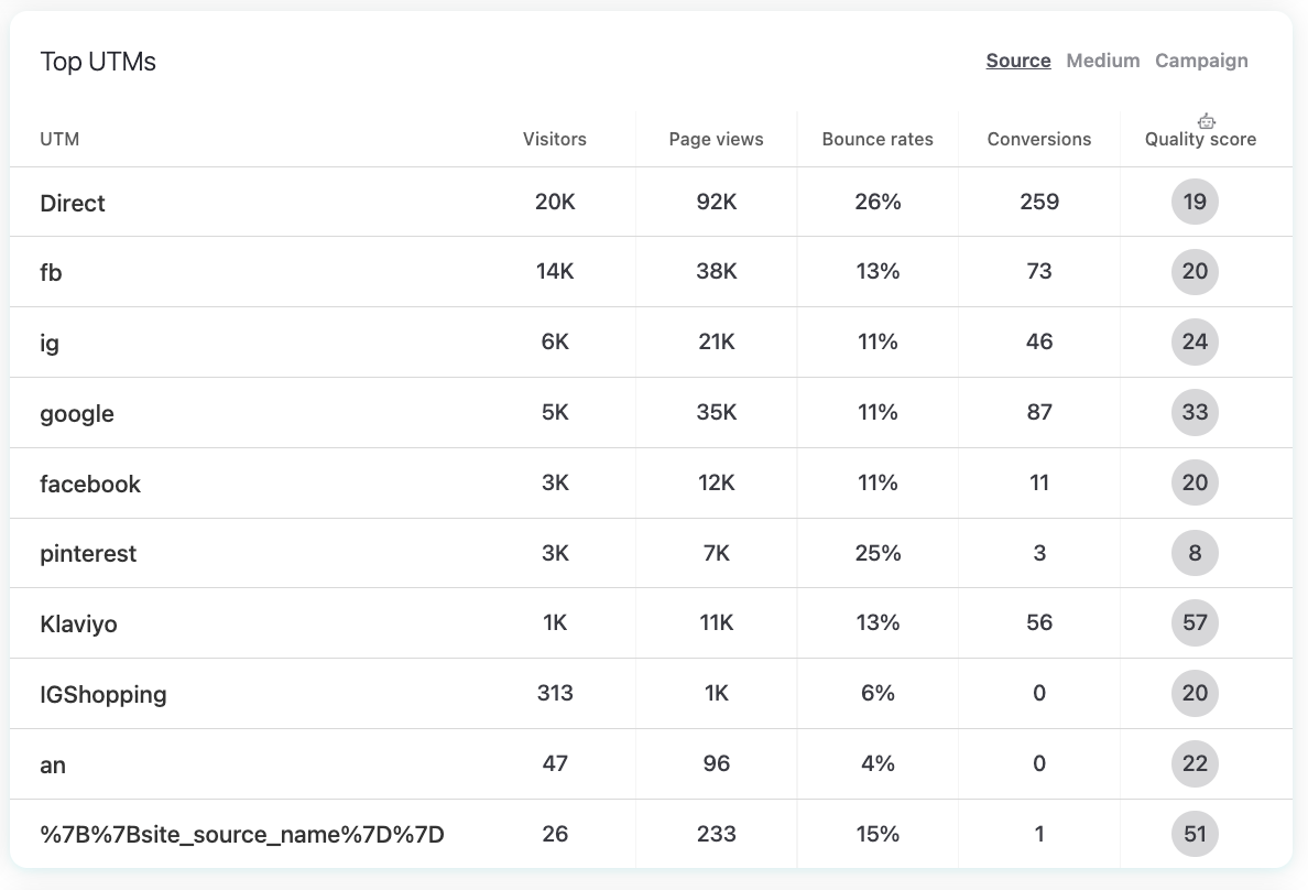 This is incredibly useful if you are comparing, for example, utm_campaign=spring_sale vs. utm_campaign=brand_awareness. Even if both drive similar traffic, the Quality Score or conversion rate may reveal which campaign is worth scaling.