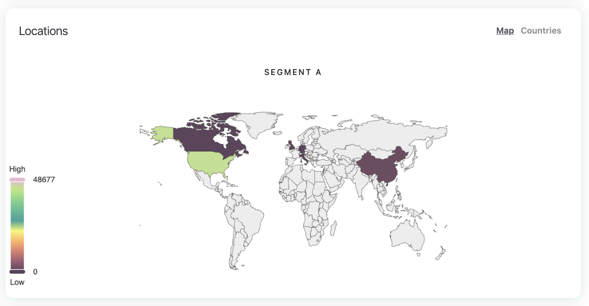 Map – a heatmap showing visitor density by country.