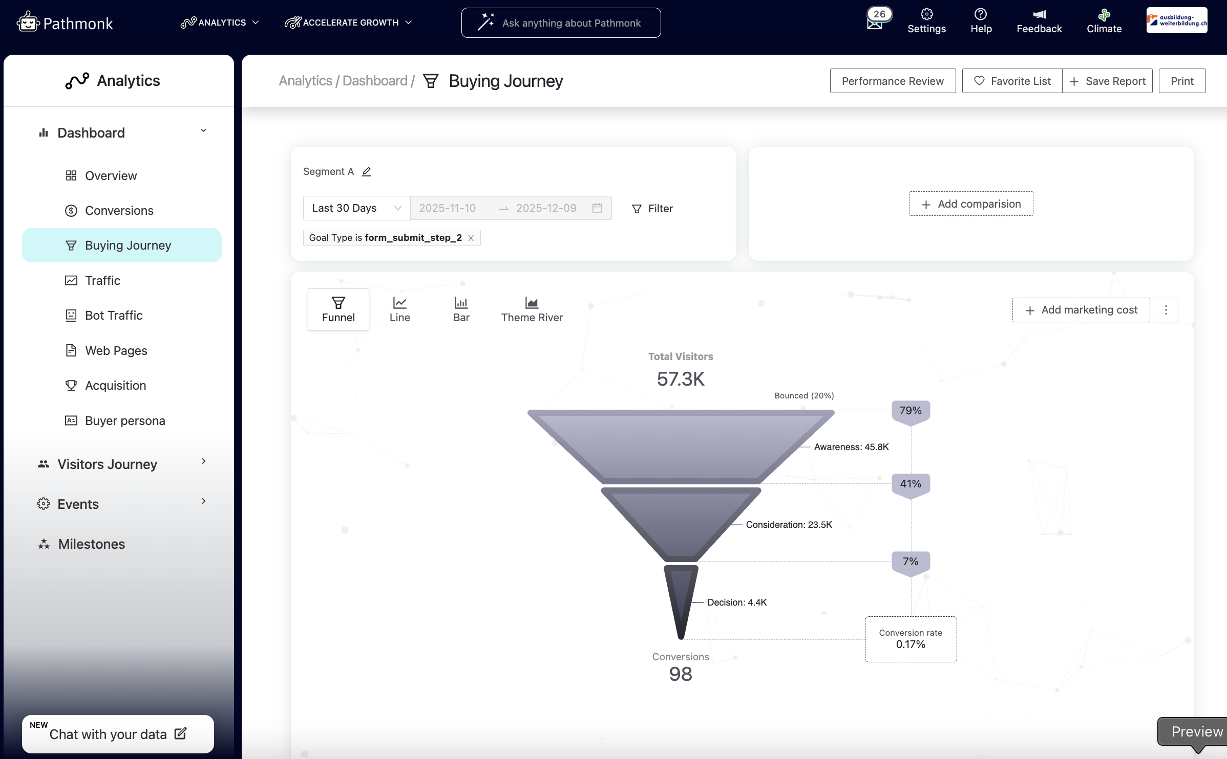 Next, you can evaluate Pathmonk’s impact on this specific conversion, not on the broader goal.