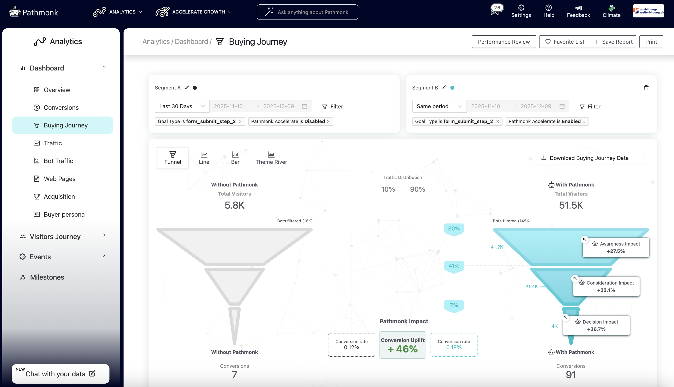 The 46 percent uplift shown represents Pathmonk’s contribution solely to Step 2 of the form, the isolated tracked event, giving you a precise understanding of performance for that action.