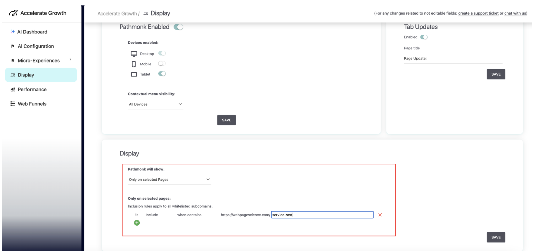Pathmonk lets you control exactly where microexperiences appear on your website. This is useful when you want to show Pathmonk only on relevant pages, avoid overlap with existing elements, or exclude pages that don’t need personalization.