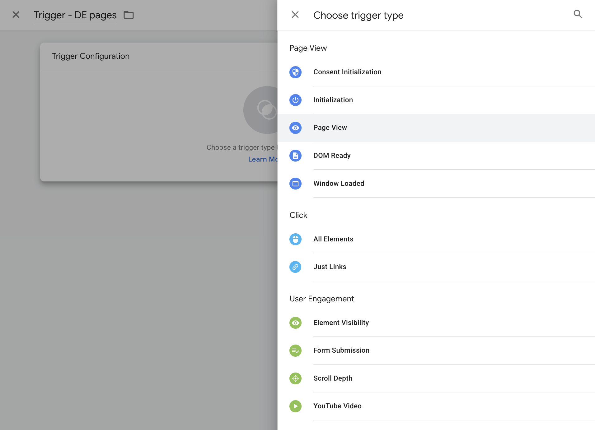 4. In this case we're going to select Page View as the trigger type